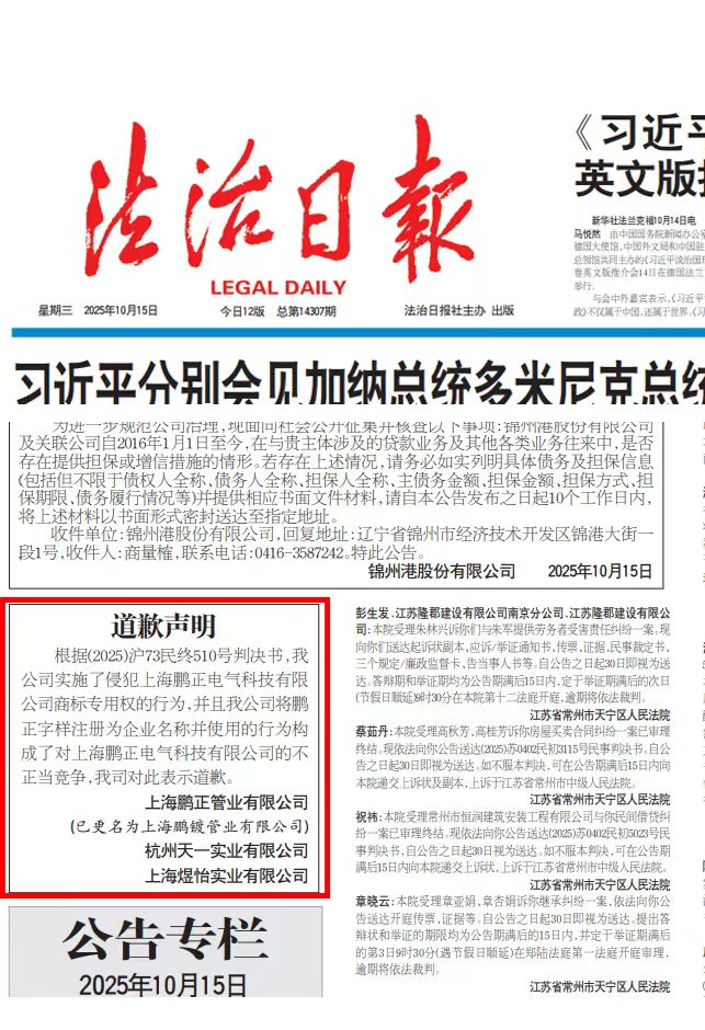 公司通过ISO9001质量体系认证,电线管、电缆桥架、配电柜取得了CQC\CCC认证,相关产品每年通过国家权威部门的检测,获得检测报告。鹏正公司是AAA质量诚信企业,朋正牌产品是中国建材名优产品和工程建设推荐产品,并获得中国著名品牌称号,是质量、信誉双保障示范单位。